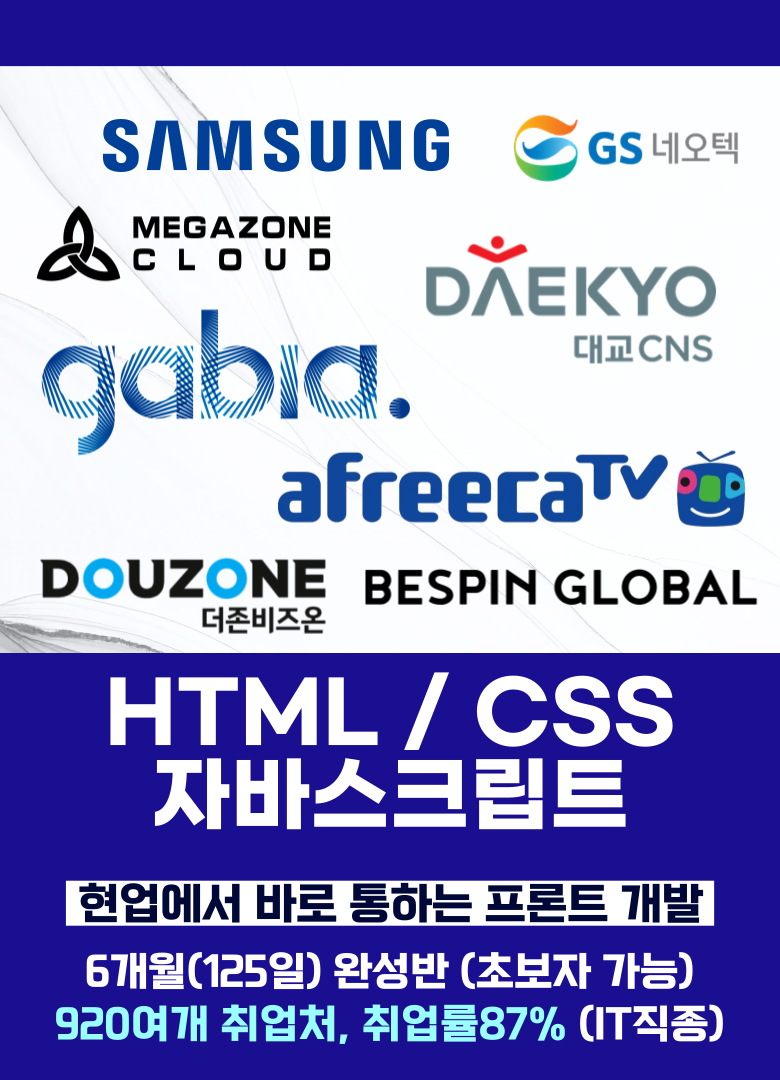 신림 국비지원 학원 HTML, CSS, 자바스크립트 부트캠프 취업 교육
