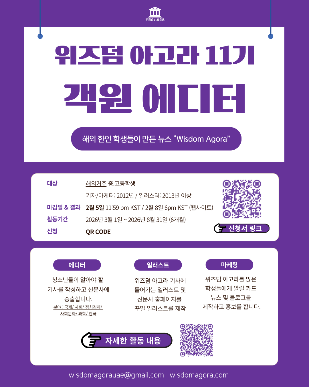 해외 한인 학생들이 만드는 뉴스, WISDOM AGORA 입니다.