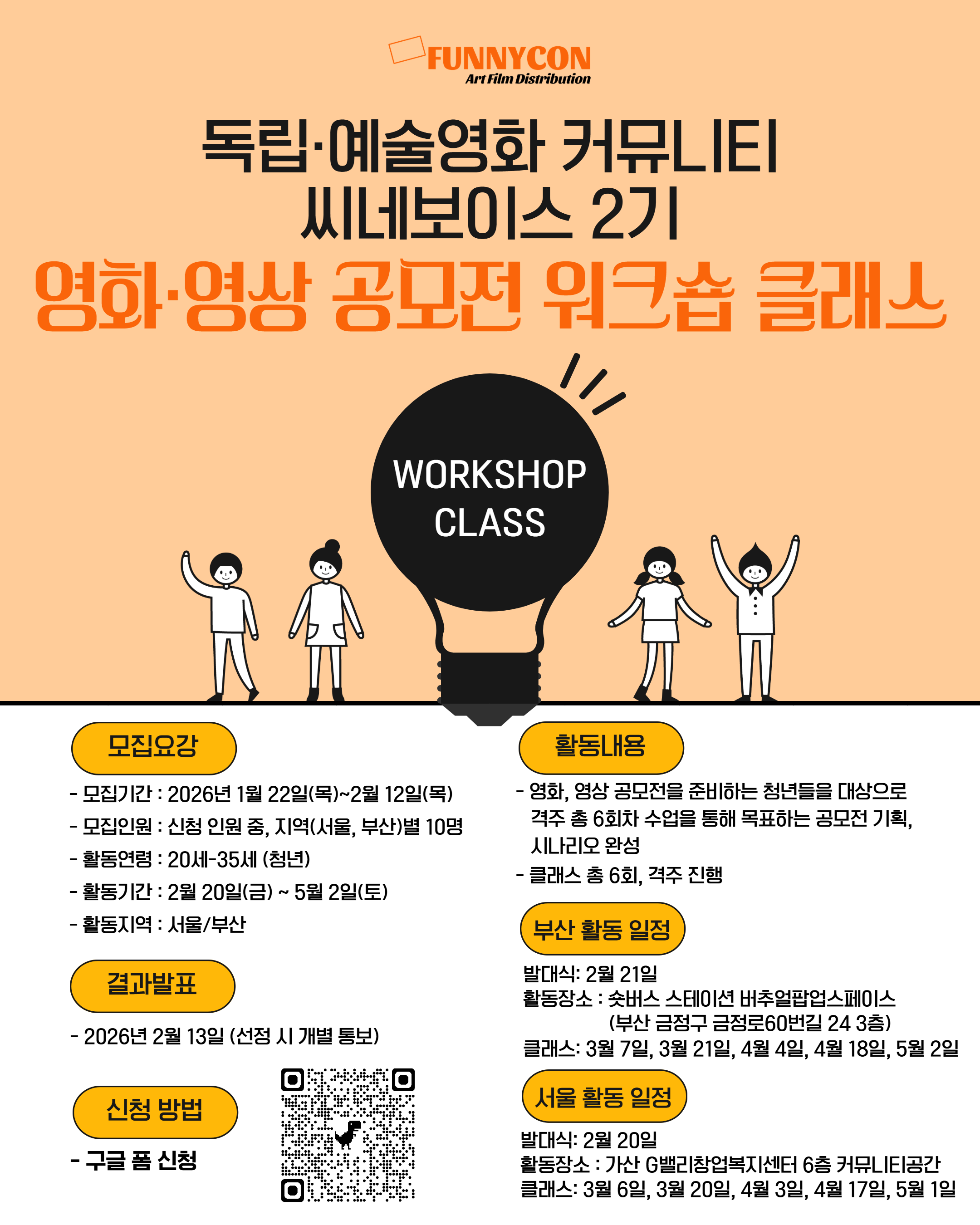 - 영화, 영상 공모전을 준비하는 청년들을 대상으로 격주 총 6회차 수업을 통해 목표하는 공모전 기획과 시나리오 완성